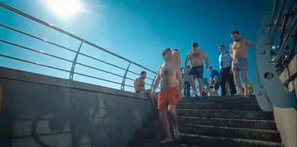 Президент Украины вместе с членами своей команды во время визита в Одессу поплавал в море.