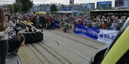Во Львове спортсмены протянули сразу три трамвая общим весом 92,2 тонны на дистанцию более 19 метров за 1 минуту 45,25 секунд.