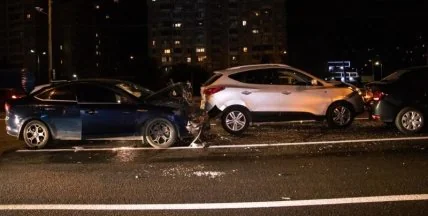 По словам водителей разбитых автомобилей, они двигались по Палладина в сторону станции метро «Академгородок» в одном ряду и начали тормозить перед красным светофором. В этот момент Ford Mondeo на скорости протаранил Hyundai, тот по инерции врезался в Renault Logan и зацепил Renault Duster.