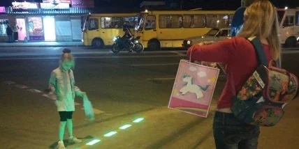 "Вы можете увидеть работу первого в Киеве светодиодной пешеходного перехода в темное время суток на перекрестке улицы Васильковской с проспектом Академика Глушкова", - говорится в сообщении.