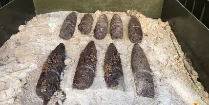 Как сообщает в среду управление Государственной службы Украины по чрезвычайным ситуациям в Тернопольской области, первые 8 артиллерийских снарядов калибром 76 мм были найдены во вторник. При этом уже в среду утром во время поиска и изъятия найденных накануне боеприпасов пиротехники обнаружили еще 96 взрывоопасных предметов.
