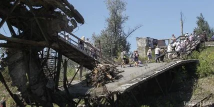 В частности, как отмечают в СЦКК, силы и средства ООО "Укртрансмост" проводят работы, в районе 7, 8 опоры левой стороны моста, по прокладке бетонных плит под фундамент временного (обходного) моста, установке металлоконструкций под опоры временного (обходного) моста и работы по усилению полотна технологической дороги от правой части моста.