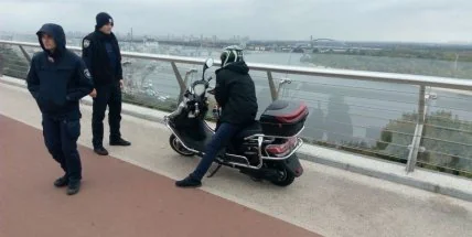 "Сегодня, около 9 утра, водитель электромопеда решил прокатиться по велодорожке пешеходного моста, что является нарушением ПДД. Его сразу заметили и остановили патрульные", - говорится в сообщении.