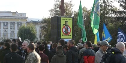 "Мы проводим предупредительную мирную акцию, и такие акции будут продолжены вплоть до 21 октября, когда состоится заседание апелляционного суда. Трое виновных в теракте совершили преступление в Украине и должны ответить по украинским законам, их нельзя отдавать России. Мы ждем приговора, и если его не будет, то для нас судьи станут соответчиками по делу", - заявил лидер "Национального корпуса" Константин Немичев.