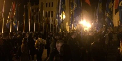 У здания Офиса президента националисты жгли файеры и призывали создавать «штаб сопротивления капитуляции» в связи с согласованием Украиной "формулы Штайнмайера".