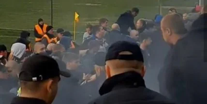 По словам очевидцев, фанаты дрались, бросали петарды и жгли сидения на трибунах.