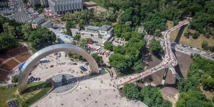 Пешеходно-велосипедный мост, соединяющий два туристических маршрута - парк "Владимирская горка" и парк "Крещатый", был открыт в этом году 25 мая в рамках празднования Дня Киева.