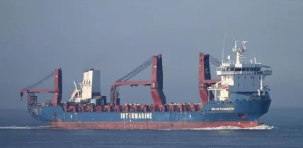 Сухогруз Ocean Freedom с патрульными катерами, которые являются военной помощи США для Украины, вошел в Черное море.