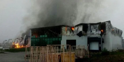 Пожарные продолжают бороться с огнем, который охватил порядка тысячи квадратных метров предприятия.