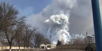 По предварительным данным оперативной группы Генерального штаба Украины, взрывы на технической территории Центральной артиллерийской базы обеспечения в г.Балаклея Харьковской области могли произойти из-за возгорания двигателя к ракетам ЗМ9 зенитно-ракетного комплекса "Куб".