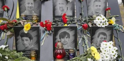 В Киеве в День Достоинства и Свободы проходит вечернее поминальный молебен в храме архистратига Михаила и украинских новомучеников УГКЦ на аллее Героев Небесной сотни.