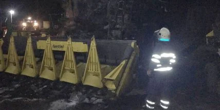 "Огнем поврежден моторный отсек, кабина и колеса грузового автомобиля "КАМАЗ" на общей площади 15 кв. м. Также поврежден моторный отсек, кабина и техническое оборудование комбайна "John Deere-660" на площади 12 м. Кв. и повреждено переднее колесо грузового автомобиля "МАЗ" на площади 1 м. кв", - говорится в сообщении.