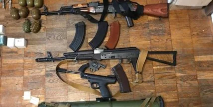 Во время проведения санкционированного обыска в квартире жителя Киева сотрудники полиции обнаружили и изъяли 2 предмета, похожие на автоматы Калашникова, 4 пистолета, охотничье ружье, 10 гранат различных модификаций, запалы к гранатам, около 1,5 тыс. патронов различного калибра.