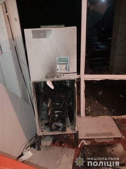 В Харьковской области полицейские устанавливают лиц, которые ночью взорвали банкомат и похитили четыре кассеты с деньгами.