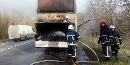 Как сообщается, около 12:27 спасатели получили информацию о пожаре в туристическом автобусе на дороге Киев-Чоп. Водитель автобуса начал тушить пожар с помощью огнетушителя еще до прибытия пожарных.