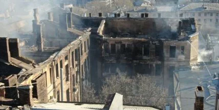 В Одессе на месте сгоревшего колледжа продолжаются работы по разбору завалов и поиску людей, которые могли оказаться под ними.