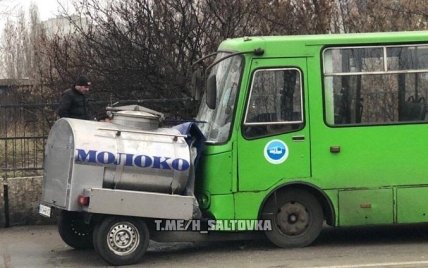 В Харькове бочка молоковоза врезалась в маршрутку: фото