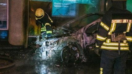 В центре Киева горело авто, огонь перекинулся на жилой дом