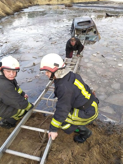 Прямиком под лед: двух людей вытащили из затонувшего авто (Фото)