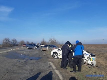 В Запорожской области произошло ДТП с участием 7 автомобилей, среди них есть автомобиль патрульной полиции.