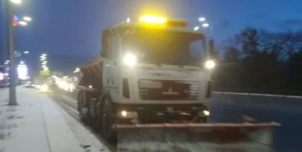 В Киеве на дорогах работают 163 единицы снегоуборочной техники.