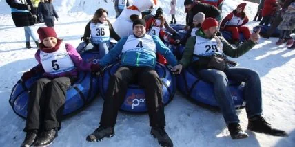 Тюбинг - это катание на надувных санках (тюбах) по снегу или по воде.