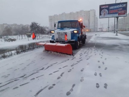 Киев из-за выпавшего снега стоит в пробках: на улицах работает снегоуборочная техника