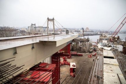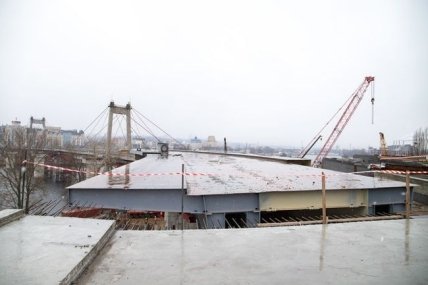 Он также отметил, что установленная металлоконструкция станет основой поворота с Верхнего Вала на мост. Строители уже закончили установку железобетонных опор мостового перехода через Днепр. На очереди бетонирование пролетного строения.