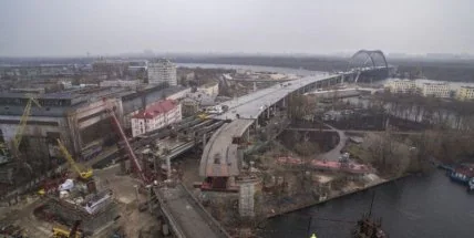 Он также отметил, что установленная металлоконструкция станет основой поворота с Верхнего Вала на мост. Строители уже закончили установку железобетонных опор мостового перехода через Днепр. На очереди бетонирование пролетного строения.