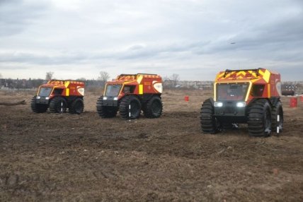 Практическая же часть торжеств, а именно: обзор снаряжения и демонстрация работы снегоболотохода "Богун" в условиях, максимально приближенных к реальным, состоялась на учебном полигоне 2 Специального центра быстрого реагирования ГСЧС Украины в г.. Дрогобыч.
