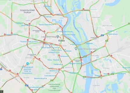 В частности, сильный трафик сейчас на Проспекте Победы и улице Жилянской в районе железнодорожного вокзала, на Крещатике возле гостиницы «Днепр», на улице Грушевского и на Набережном шоссе.