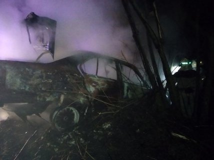Спасатели установили, что произошло ДТП с участием легкового автомобиля "BMW-525". Водитель легковушки не справился с управлением и выехал за пределы дорожного покрытия. В результате транспортное средство загорелось. Водитель и пассажир самостоятельно вышли из автомобиля и вызвали спасателей.