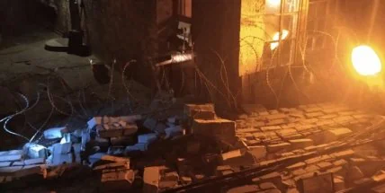 На "Мотор Сич" обрушилась часть кирпичного забора.