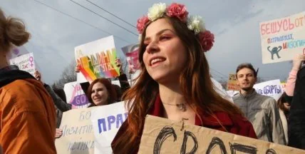 "Мы против гендерного насилия, расизма и сексизма, против нарушения прав женщин на труд и любых проявлений патриархальности в обществе. Настаиваем на том, что женщина всегда в приоритете", - объясняет цель шествия представительница общественной женской организации "Сфера" Анна Шарыгина.