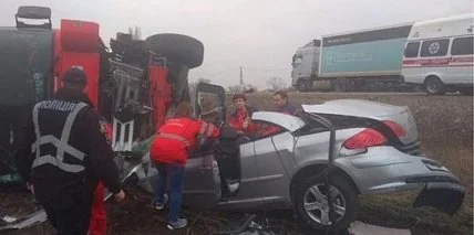 На обнародованных фотографиях видно, что после столкновения оба автомобиля слетели с дороги. При этом легковушка буквально раздавлена, а фура перевернулась на бок.