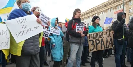 "Если вчера мы планировали акцию как чествование земляков-добровольцев и волонтеров, то сегодня к этой цели добавили еще одну: предупредить центральную власть, что мы против примирения с врагом. Подписанные в Минске договоренности - это прямая государственная измена, благодаря ей Россия как страна-агрессор вышла за пределы войны и стала наблюдателем за "внутренним украинским конфликтом". Поэтому мы настаиваем, чтобы все участники договоренностей в Минске со стороны Украины были арестованы по уголовной статье, связанной с государственной изменой", - сказал с трибуны акции ее соорганизатор, лидер харьковской организации партии "Демократическая топор" Никита Соловьев.