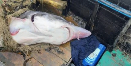 "В ней лежала запутанная в сетях огромная белуга - длиной около 2 м и весом около 150 кг. Пытаясь скрыть рыбу, нарушители накрыли ее плащом от общевойскового защитного комплекта. На борт ее, очевидно, затягивали крюками, так как у нее были глубокие раны", - сообщил Перегняк.