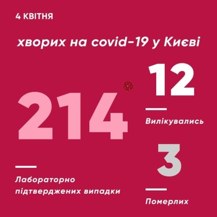 В Киеве по состоянию на утро 4 апреля 25 новых подтвержденных случаев заражения COVID-19, всего в столице 214 заболевших, сообщил мэр города Виталий Кличко.
