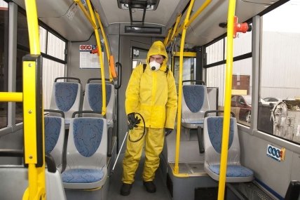В наземном общественном транспорте в основном используют дезинфицирующее средство хлоросан.