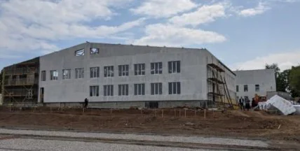 В Наталинской школе в Красноградском районе на Харьковщине в рамках «Большого строительства» возводят новый двухэтажный корпус со спортивной и актовым залами.