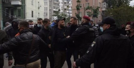 Руководитель ячейки "Нацкорпуса" отмечает, что с их стороны задержали "около пяти человек", которые сейчас находятся в Печерском райотделе полиции.
