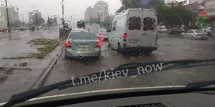 По затопленной дороге автомобили не едут, а плывут. Как видно на видео, обнародованном в Телеграм-канале "Киев Сейчас", машины едут очень медленно, из-за чего возникли тянучки в обе стороны движения.