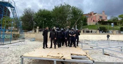 Общественникам удалось сломать несколько секций каркаса. На место прибыли дополнительные силы полиции, и активисты остановили демонтаж.