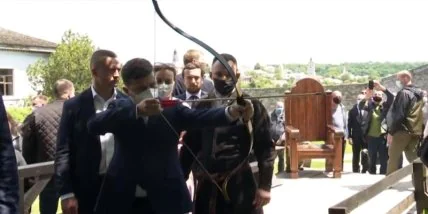 Президент Владимир Зеленский пострелял из лука в Каменец-Подольской крепости во время своего визита в Хмельницкую область.