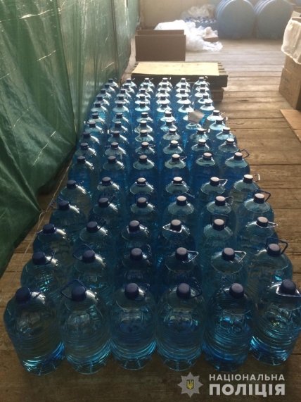 По словам старшего следователя Киевского отдела полиции Артура Александровича, при проведении осмотра места происшествия правоохранители обнаружили и изъяли 395 емкостей с жидкостью, имеющей характерный запах спирта объемом 5 и 10 литров, 22 емкости для розлива жидкости объемом 500-1500 литров, а также средства для фасовки и дозирования жидкости.