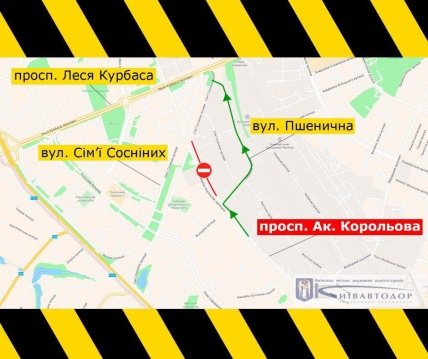Отмечается что объехать ремонтную зону можно так: просп. Ак. Королева - ул. Пшеничная - ул. Семьи Сосниных - просп. Леся Курбаса.