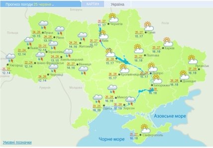 Также, по данным синоптиков, 24 июня на большей части территории страны, 25 июня в западных, южных, Житомирской и Винницкой областях ожидаются кратковременные грозовые дожди, на остальной территории без осадков.