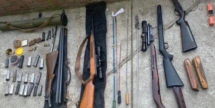 "В результате обыска, полицейские обнаружили и изъяли тубус от "РПГ-26", нарезной карабин с оптическим прицелом калибра 5,6 мм, гладкоствольное двуствольное ружье калибром 12 мм, оптический прицел, 6 шомполов, 3 примера, 20 пистолетных магазинов, 3 пистолетные стволы калибром 9 мм, обрезанный ствол калибром 12 мм, пневматическое ружье калибром 4,5 мм, гладкоствольное двуствольное ружье с признаками замены ее составных частей, пластиковую коробку с дробью и 129 патронов различного калибра", — говорится в сообщении.