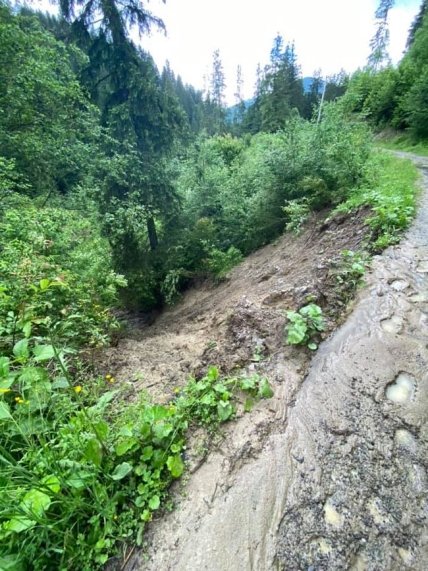 По ее словам, из-за непогоды произошло три оползня, один из которых полностью перегородил дорогу в поселок Кривец, где было озеро. Два оползня случились вокруг озера. Дамбу снесло и все смыло в реку Черный Черемош.