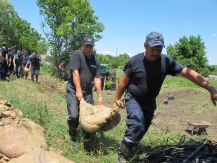 "Спасатели обследуют проблемные участки местности и проводят расчистку и укрепление земляной дамбы для защиты от возможного наводнения и подтопления частных домохозяйств на ул. Озерная в с. Яськи. Укреплено 200 м. дамбы с помощью джутовых мешков", - отмечается в сообщении.